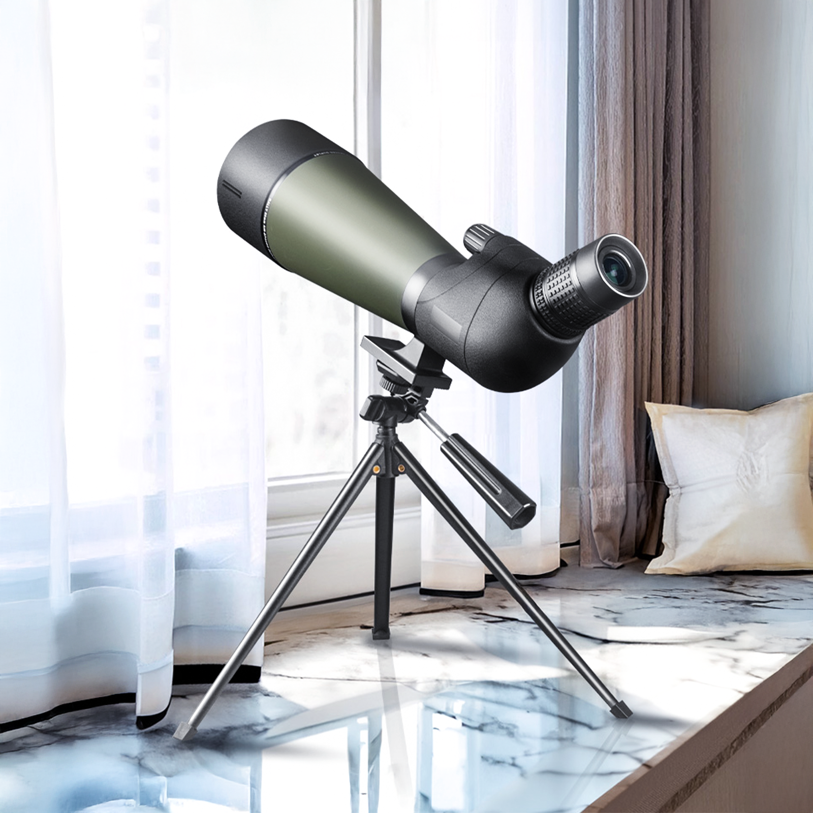 - 80 mm Grote Objectieflens – Legt meer licht vast voor helderdere, scherpere en meer gedetailleerde beelden.