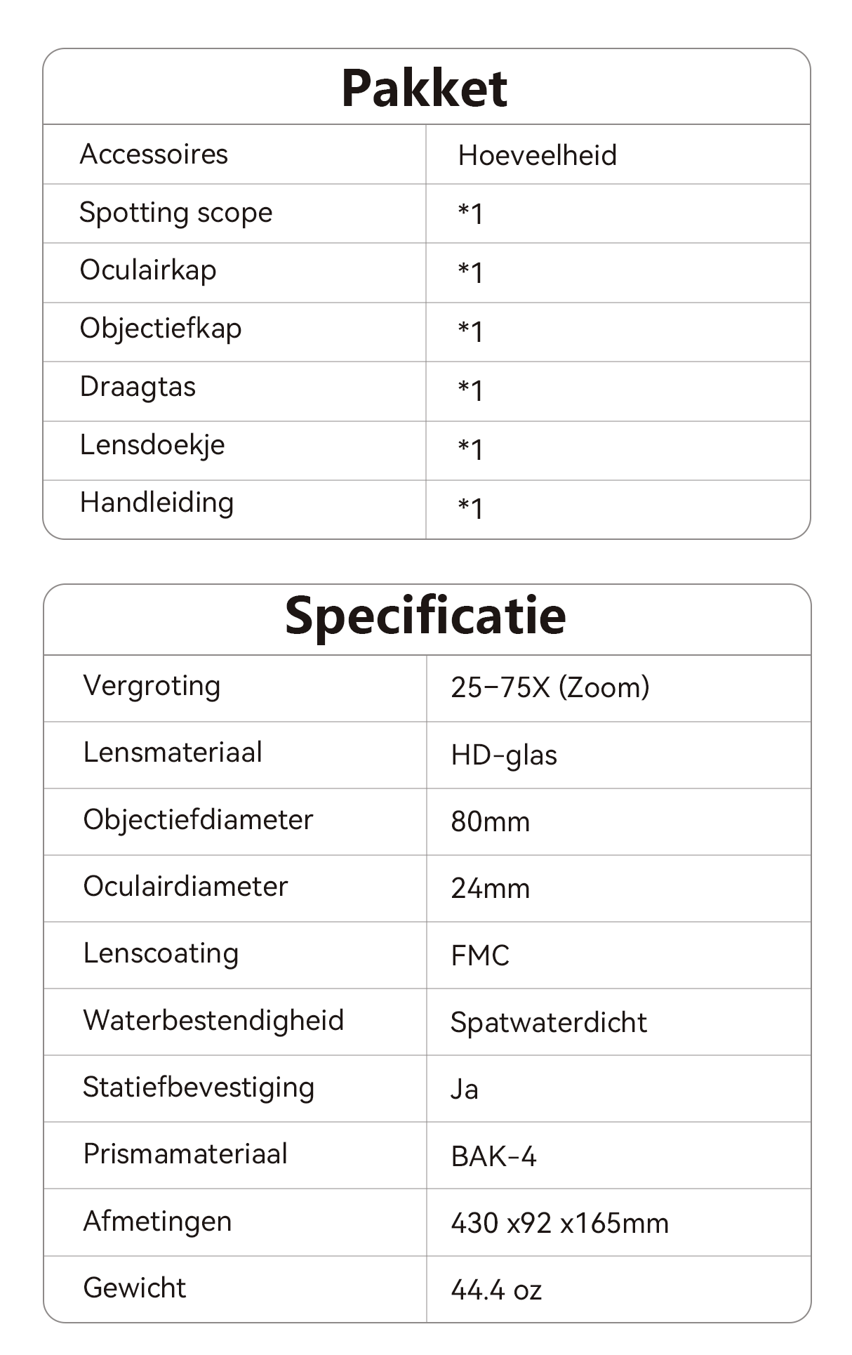 - 25–75X Continue Zoom – Pas de vergroting eenvoudig aan voor verschillende kijkafstanden.