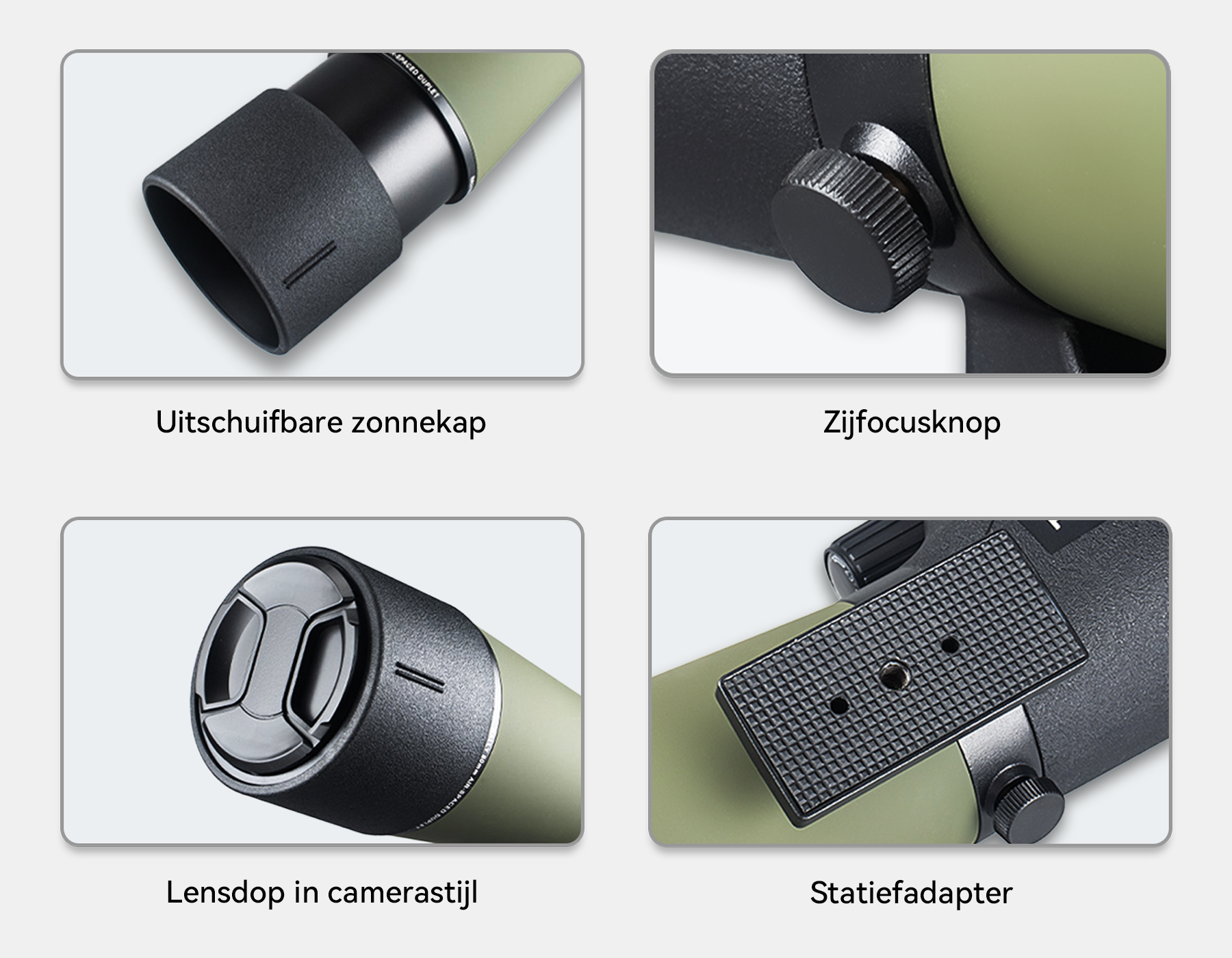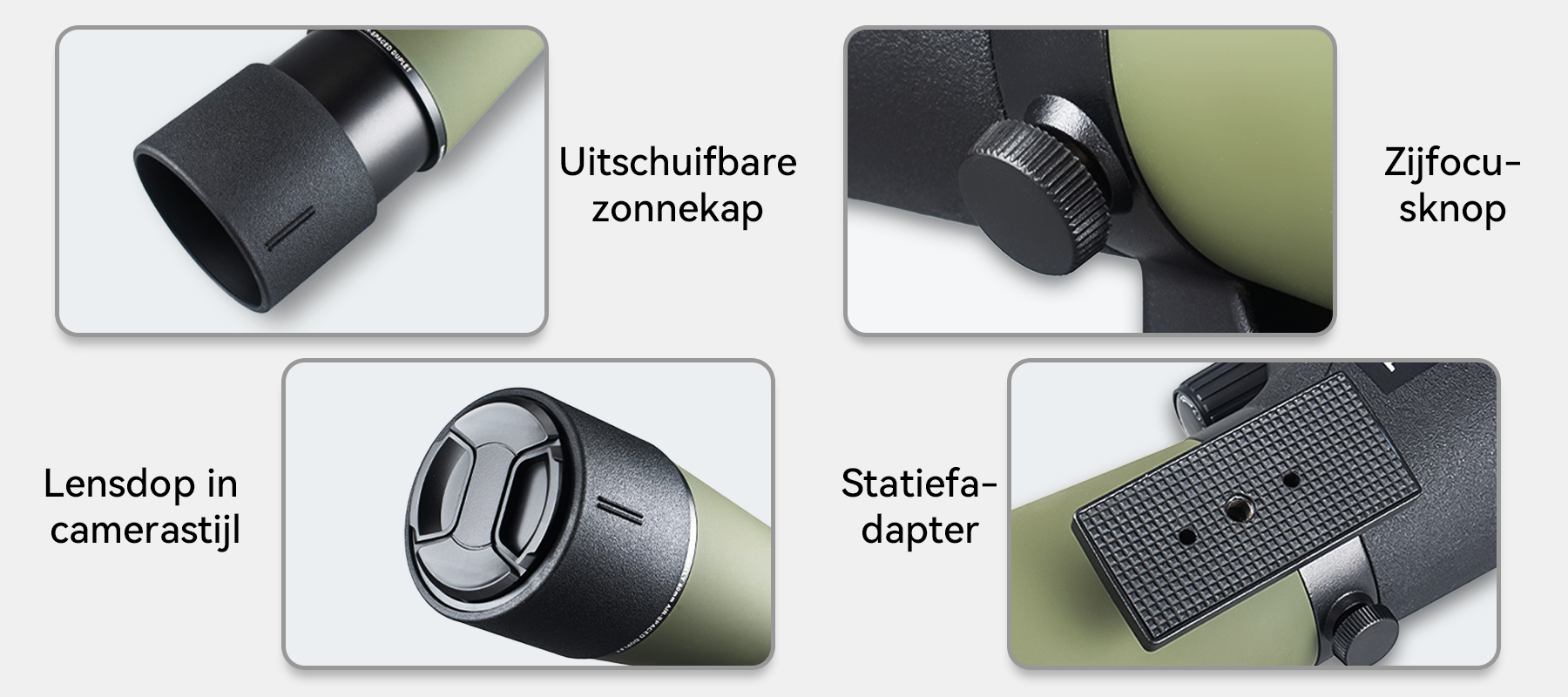 - FMC Multi-Coated Optiek – Verbetert de lichttransmissie en vermindert reflecties voor levendige, natuurgetrouwe kleuren.